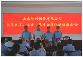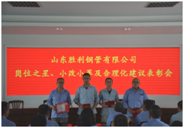 ? 2024年5月17日,山東勝利在集團(tuán)樓四樓會(huì)議室舉行崗位之星、小改小革及合理化建議表彰會(huì),公司中高層管理人員及各部門代表參加本次表彰會(huì)。會(huì)上,公司授予李承振等5名員工“崗位之星”榮譽(yù)稱號(hào),表彰了韓妮等4名提出合理化建議的員工、表彰了楊振鐸等4名小改小革成果顯著的員工。