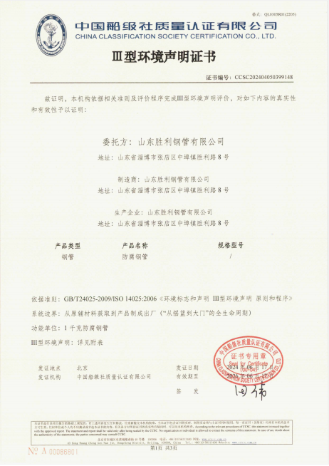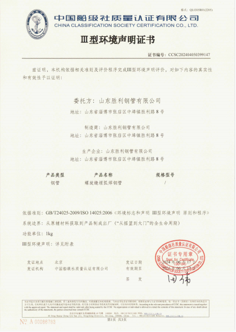 ? 2024年6月份,公司進(jìn)行了螺旋縫埋弧焊接鋼管和防腐鋼管的碳足跡、Ⅲ型環(huán)境聲明評價工作。本次評價系統(tǒng)邊界均是 “從搖籃到大門”的全生命周期評價,即從原輔材料獲取到產(chǎn)品制成出廠全流程,6月中旬公司取得了碳足跡評價及環(huán)境聲明證書。本次評價更清晰的界定了公司產(chǎn)品生產(chǎn)過程中各個環(huán)節(jié)的碳足跡數(shù)據(jù),在排除原材料因素帶來的影響外,公司需結(jié)合相應(yīng)數(shù)據(jù),探索進(jìn)一步節(jié)能減排的可行性,同時本次評價為后續(xù)公司參與重要管線投標(biāo)提供了有力的數(shù)據(jù)支撐。