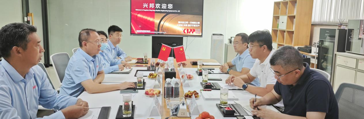 ?? 2024年9月3日,山東勝利公司總經(jīng)理趙增強(qiáng)帶隊(duì)走訪了河北唐山興邦管道工程設(shè)備有限公司,受到了唐山興邦公司董事長(zhǎng)邱華偉、常務(wù)副總經(jīng)理邱秀娟等領(lǐng)導(dǎo)的熱情接待。